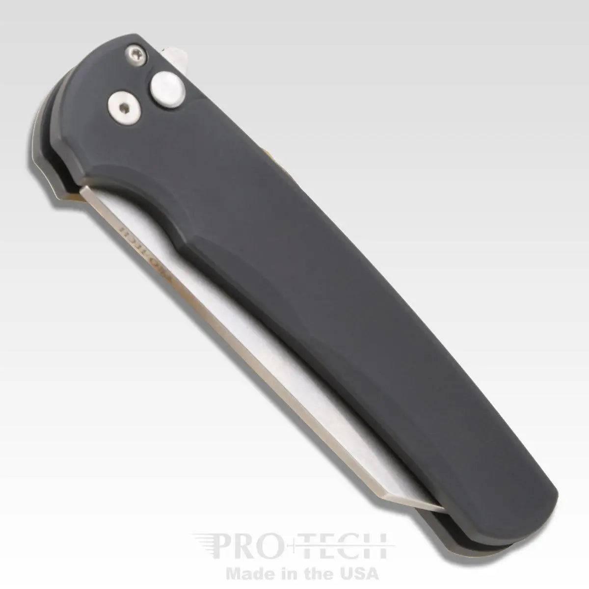 Pro-Tech Malibu Wharncliffe Plunge Lock Flipper Knife Black (3.3" Stonewash) 5101
