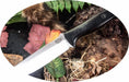 3V steel has incredible toughness (lateral strength), improved edge retention (abrasion resistance) relative to A2 and much greater corrosion resistance than A2 all while only being a little tougher to put an edge back on. Built of a full tang frame with comfortable contoured handles in the industries widest variety of materials, this Barkie has garnered a near cult following for good reason.