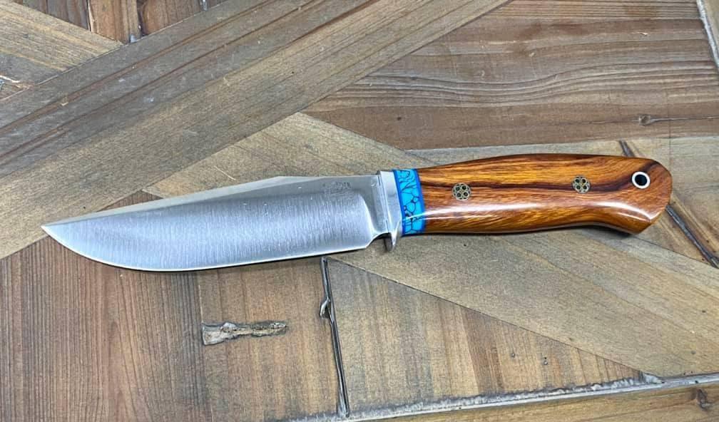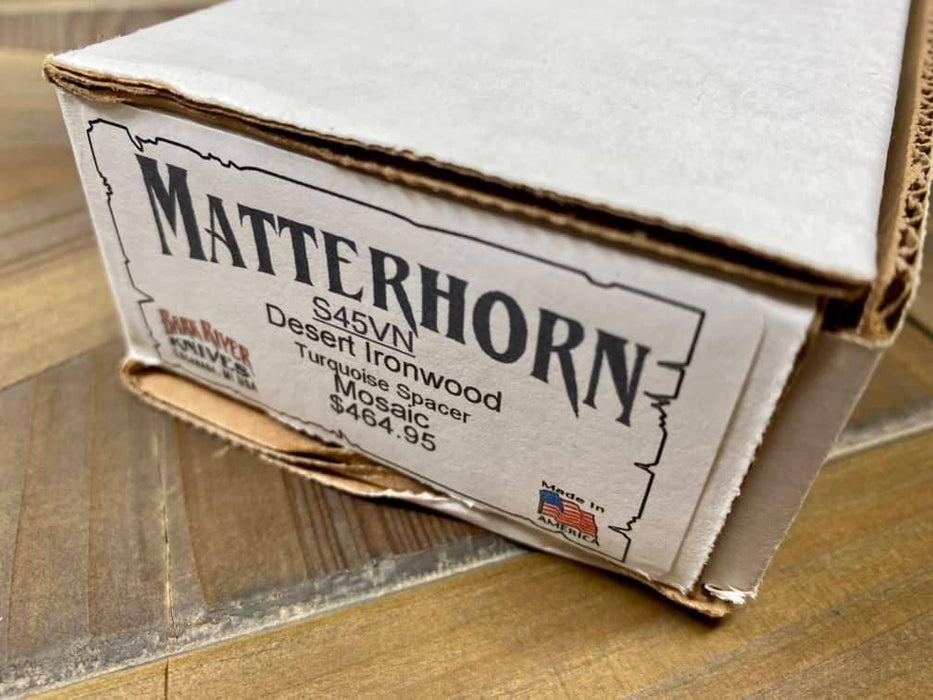 Bark River Matterhorn Fixed Blade CPM-S45VN Desert Ironwood Turquoise Spacer Mosaic Pins