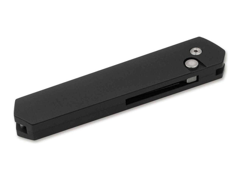 The Kwaiken Compact Auto is a slightly sturdier version, a little shorter overall but with almost the same size handle, which makes it look a touch more robust. The model retains every bit of the clean and elegant character of the Kwaiken. So, the Boker Plus Kwaiken Compact Auto is a wonderful addition to the successful series, a favorite with collectors as well as users and fans of elegant pocketknives. With a black anodized aluminum handle and a 154CM blade with a stonewash finish. With a clip (tip-up/r).