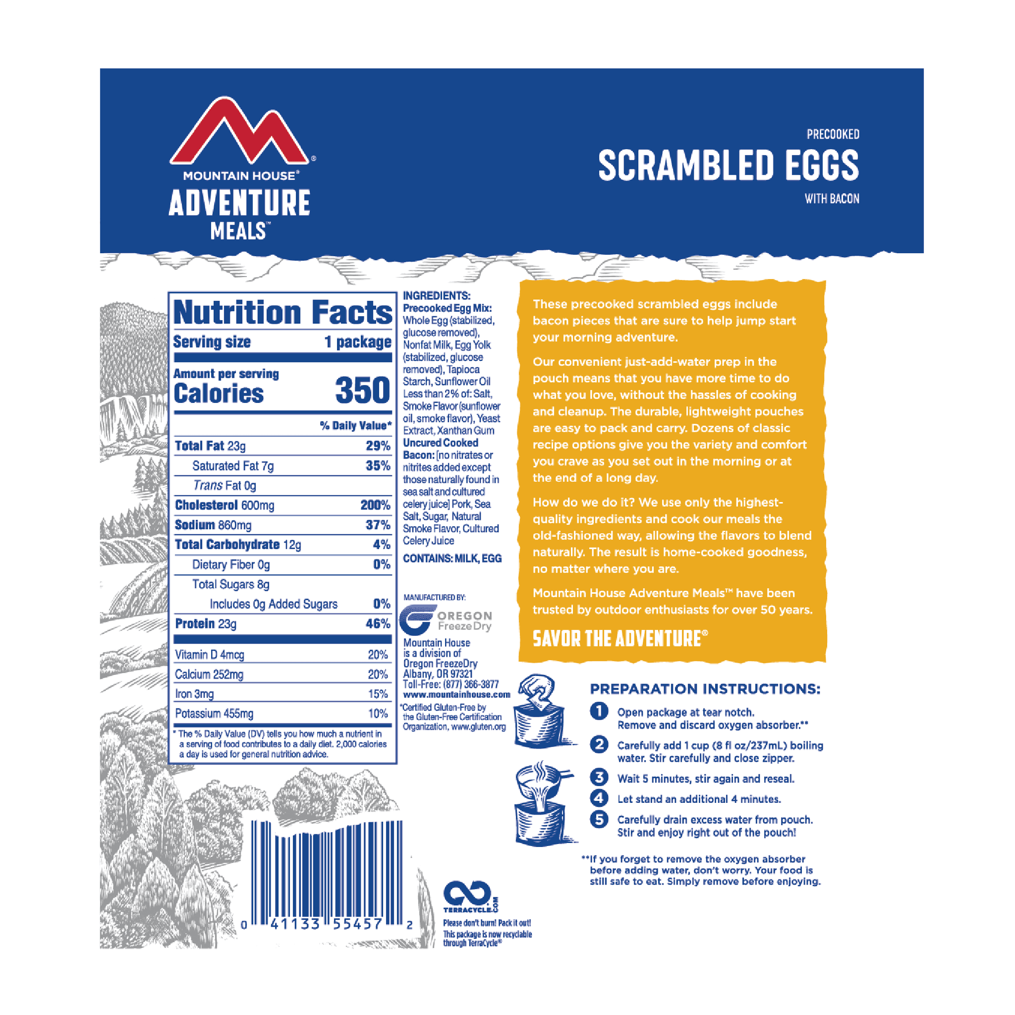 Mountain House Scrambled Eggs with Bacon Hiking, Survival & Emergency Food (Pouch)