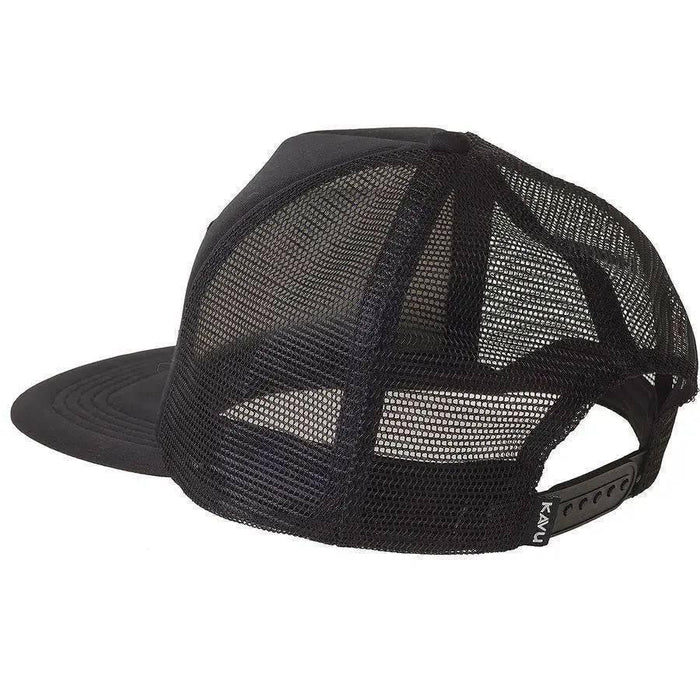 5 panel trucker, KAVU embroidered patch on foam front, foam bill shipped flat but can adjust, mesh back with adjustable snap closure, interior moisture absorbing sweatband.
