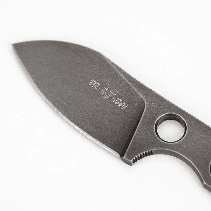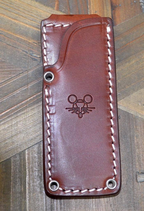 GiantMouse uses 5mm BÖHLER M390 STEEL for this new variation of the ever popular GMF1, and gave it our dark PVD stonewash treatment to create a beefy little utility fixed blade that will address any EDC cutting need that comes your way. Three separate areas of jimping ensure a solid grip no matter what your chore. The rounded spine and beautifully chamfered holes in the handle add elegance to an otherwise extremely functional cutting tool. Each GMF1-F comes with a handmade Italian leather sheath designed by Ansø and Vox specifically for this knife.