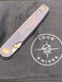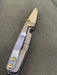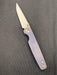 Made entirely at our San Diego manufacturing facility, its lightweight titanium handles are 1/8” thick, while all of the hardware is precision counterbored to fit flush along the scales, providing a sleek profile. In the closed position, the titanium thumb studs act as a secondary stop for the blade, while also protruding slightly above the handle scale, to allow easy opening.