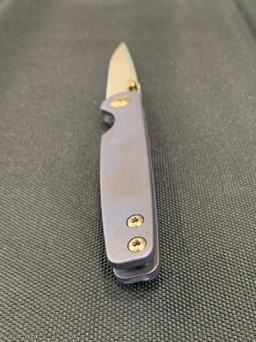 This Toor Knives Suitor FL154S Folding Knife 3" CPM-154 Stonewashed Drop Point Blade has be professional anodized "blue" with all titanium hardware. This knife is one-of-a-kind. The knife you are viewing is the actual knife you will receive - Only 1 In-Stock.