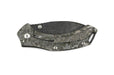 Additionally, the full Carbon Fiber backspacer greatly improves the rigidity of all the frame body screws, relieves the stress from traditional threaded standoffs and is finished with a large loop that features jimping for safety cords and lanyards. The XT1’s iconic shaped recurve blade is 0.157" (5/32) thick, and its hand-ground bevel stands about 1.0” tall. The initial edge is left slightly thicker prior to sharpening, allowing for a much larger final edge and more mass. This critical feature allows for a longer edge life, as well as a more user-friendly grind to resharpen in the field.