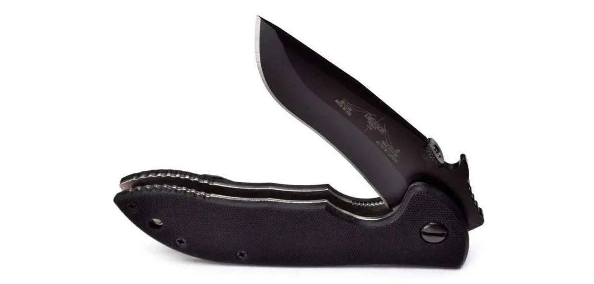 Emerson Mini-Commander is as the name infers a smaller sized Emerson Commander, but it retains the same blade thickness so you can expect the same great performance. The stonewashed finished 154CM blade features Emerson's patented "wave shaped opening feature" or Remote Pocket Opener. In an emergency or injury situation the knife can be opened with one hand as it is drawn from the pocket. The handle is black G-10 epoxy/glass laminate over a titanium liner lock frame. Includes black pocket clip for tip-up carry. Information from Emerson Knives