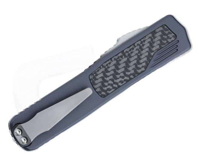 Introducing the Guardian Tactical Scout CF OTF 142212 the ultimate tactical knife. Made in the USA, this knife features a durable ELMAX blade for precise and effortless cutting. With an overall length of 8 inches and a weight of 3.13 oz, it's the perfect balance of power and portability. The gray carbon fiber inlay and two tone black S/E serrated blade add a sleek and professional touch to this expertly crafted knife.