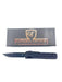 The Guardian Tactical Production Scout is the budget-friendly version of the carbon fiber model. Smaller than a Recon-035 and bigger than a 025, the Scout hits the EDC sweet spot. Think slim upgraded 035. Black aluminum handles make for a sleek-looking carry. A wicked clip point blade offers great piercing power and plenty of belly for slicing. The Scout is a great knife for anyone wanting a compact OTF with big cutting power.