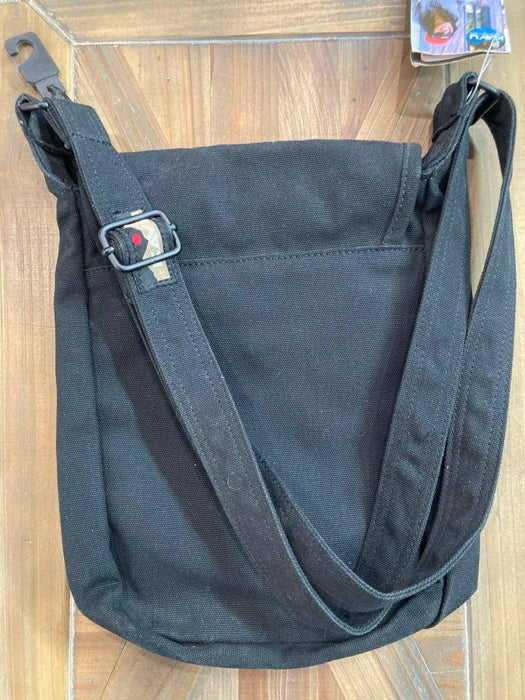 A KAVU classic - Adjustable shoulder strap, main compartment flap with zip closure. One external zip pocket, cell phone pocket, internal organizational pockets, pen slots and key clip. What a kick! Fabric: Cotton. Dimensions: 8" x 11".![]()