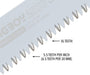 Multi-purpose folding saw with a 14-1/5-inch curved blade for a greater reach. It is equipped with a perfectly-balanced uniquely-shaped low angle curve (2,000 mm radius of the blade), hard chrome-plated blade. The low angle curve enables cutting branches smoothly and incredibly fast. Features extra large teeth (5.5 tpi).