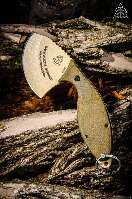 TOPS Backwoods Skinner SKIN-01 Fixed 3" Coyote Tan Blade Gut Hook OD Green Micarta Handles