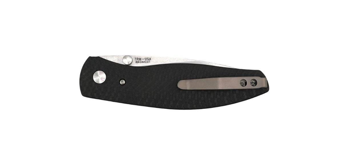 The TRM Atom Liner Lock Contoured 3D Carbon Fiber Scales Stonewashed MagnaCut is a versatile and stylish EDC knife with a unique quick-change scale feature. With only two screws on each side, the scales can be easily switched out for a fresh look in a flash, without needing to remove the pivot. The knife also boasts a contoured 3D Carbon Fiber scales, a high-quality CPM-MagnaCut steel blade, and TRM's new thumbstuds. This model is designed for right-handed tip-up carry and comes brand new in its original box. Experience the convenience and appeal of the TRM Atom – order yours today!