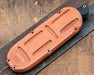 Bark River's take on the Classic Drop Point Hunter, a knife designed to be able to take on any of the large North American game animals. The full tang premium S45VN stainless steel blade with a saber ground convex edge has a slightly canted blade angle to allow for a more efficient cut while easing tension in the hand. A nickel silver bolster provides added security while in use, as the antique ivory micarta handles provide an attractive and secure grip. Easily carry your Classic Drop Point Hunter with the hand made tanned leather belt sheath.