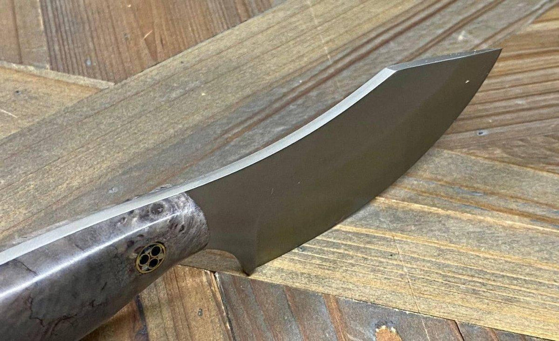 This Bark River JX6 comes with ultra premium MagnaCut blade steel with beautiful sand maple burl and unique mosaic pins!