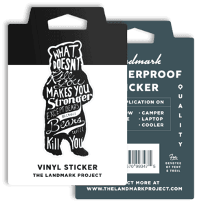 Catalog your adventures with stickers of your favorite Landmark Designs! Our original artwork looks great on water bottles, car windows, coolers, or wherever else they may be applied. Each sticker is screen printed on weatherproof vinyl -- durable enough to stand up to the elements while still looking good for years. When peeled away from the backing, the sticker measures 3" tall.