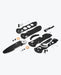 - Textured safety black G10 handles with 420J full stainless steel liners and a reversible tip-up deep pocket clip