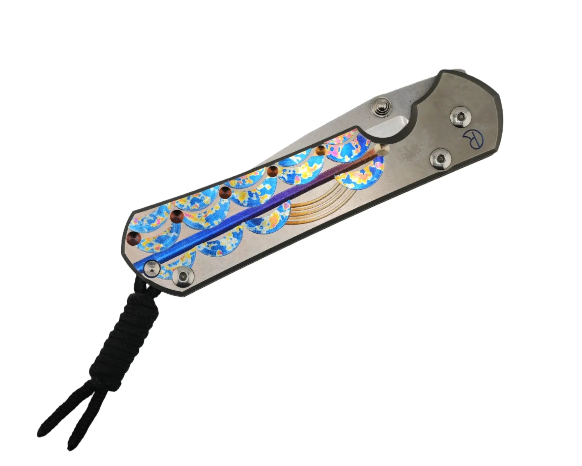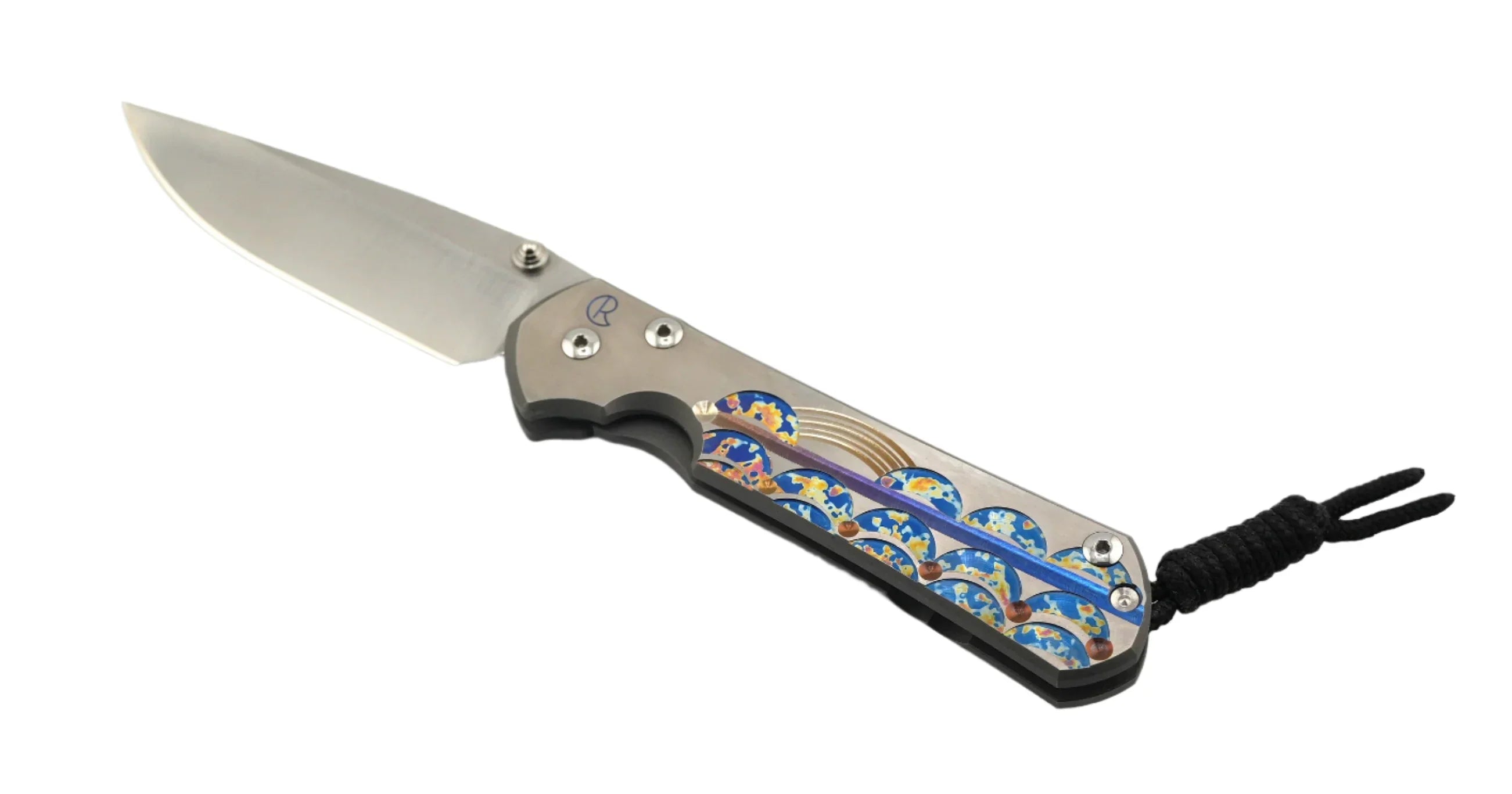 Unique Graphics are abstract. They're "drawn" freehand on a milling machine, so every knife is a one-off piece of art that cannot be exactly replicated. With that said, Chris Reeve can re-create pieces similar to past designs, with a choice of cabochons and anodized titanium. Artwork decisions are ultimately governed by their in-house artist. All models are available with a dedicated left or right-handed orientation.
