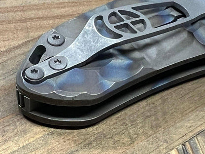 The thumb ramp's jimping is carefully milled for functionality without sacrificing comfort, reflecting the thoughtful attention to detail you will come to appreciate as an owner of this exceptional knife. The handle frames and matching backspacer showcase a refined, blasted, and dark stonewashed finish. The design seamlessly integrates multiple essential components of a premium flipper, resulting in a cleaner and more streamlined appearance.