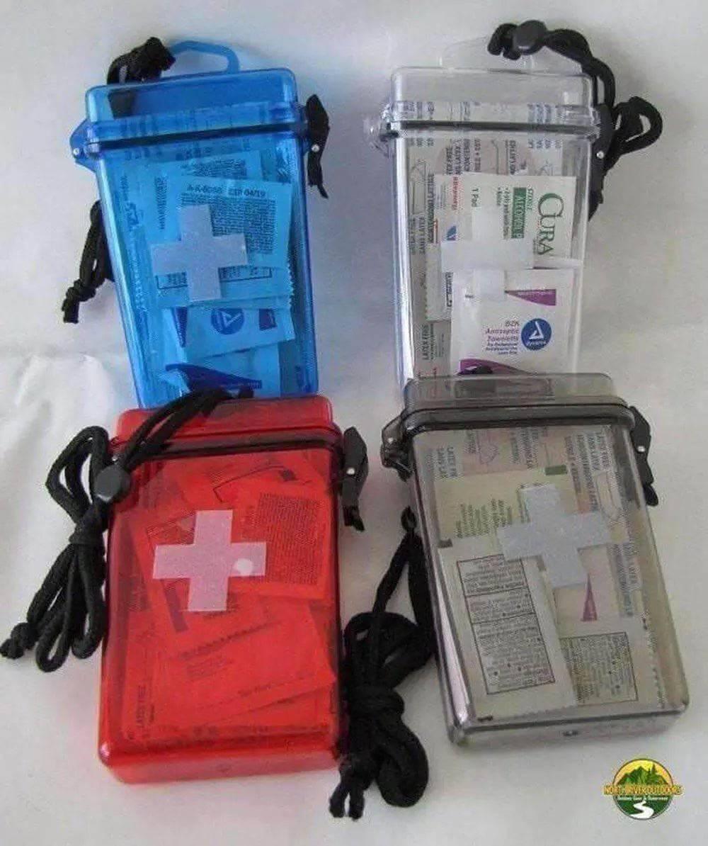 The FA150 is a kit that comes in a waterproof hard case. The black strap is long enough to be hung around the neck.The FA150 measures 4.5"x3"x1". The kit comes shrink wrapped or in a sealed plastic bag with content list.Contains 28 items, including:16 Bandage Strips, 1''x3'' 2 Knuckle Bandages2 Bandage Strips, 2''x3'' 1 First Aid Cream Package4 Pain Relievers 2 Alcohol Wipes2 BZK Wipes 1 EFA - First Aid Instructions