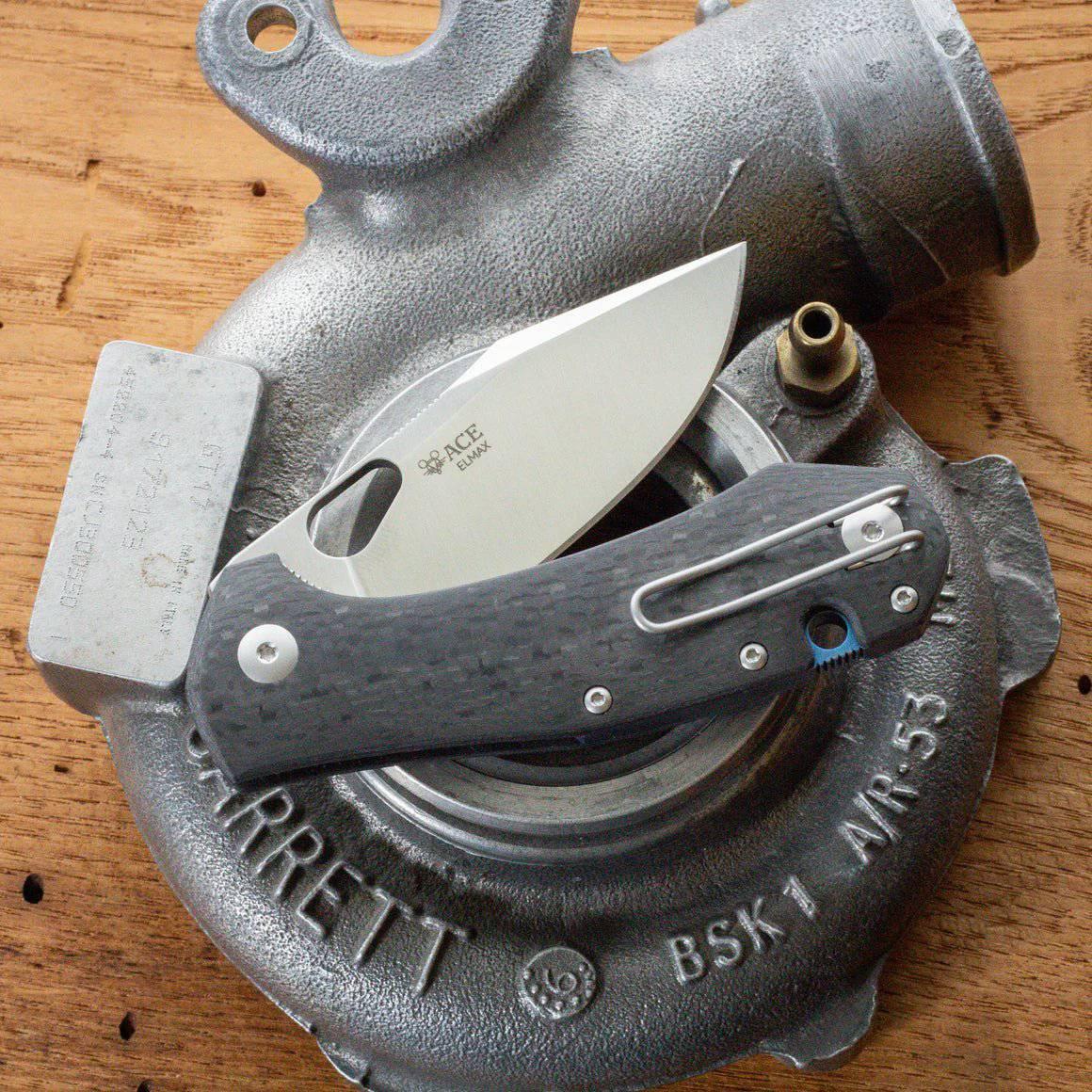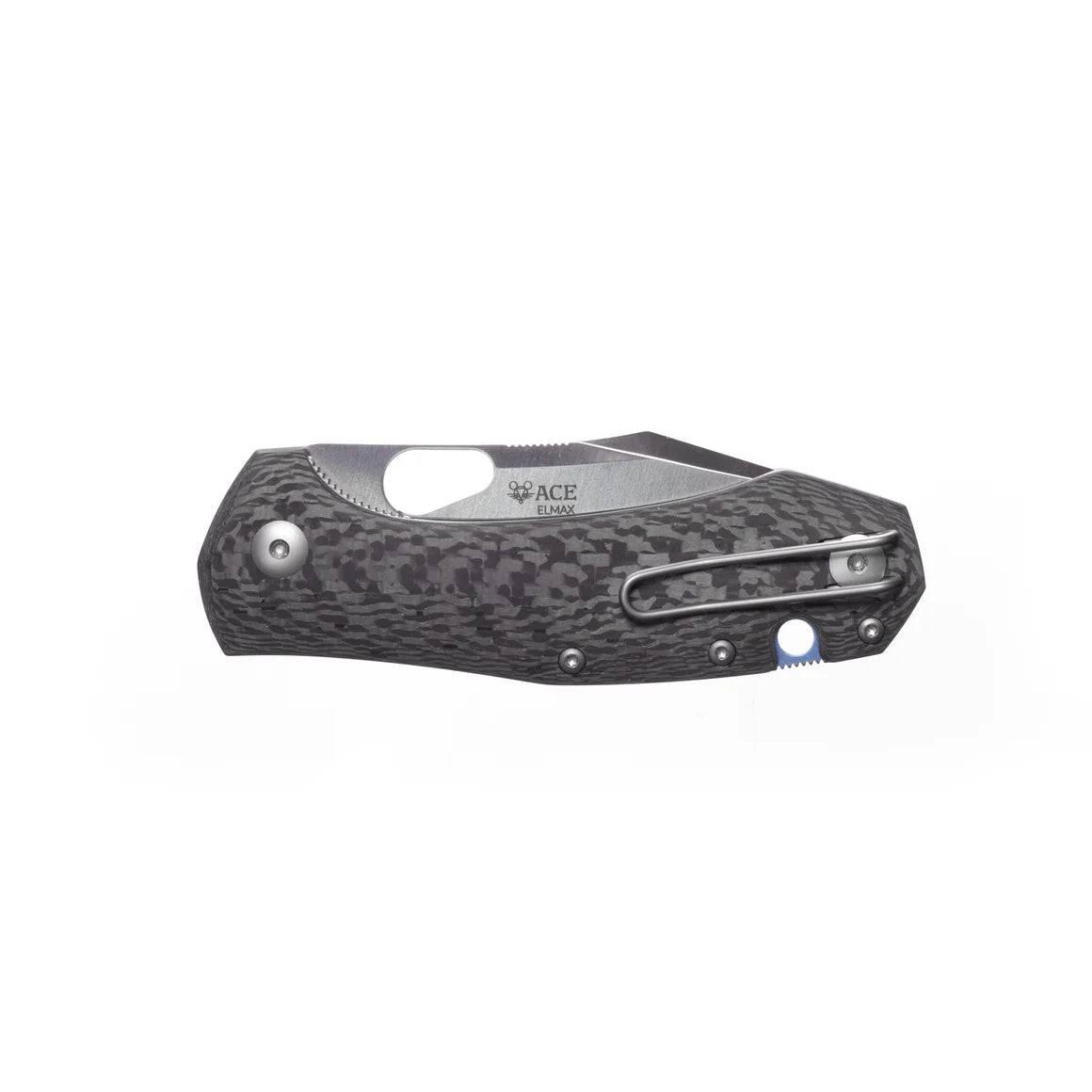 The GiantMouse ACE Atelier Folding Knife is the EDC-friendly version of the popular Grand model, designed for ultimate performance. The tough Elmax steel blade and carbon fiber handles ensure long-lasting durability, while the perfect ergonomics, fit and finish provide excellent carry and control. Boasting an impressive design and bold look, this knife is sure to impress.While the ACE Atelier still checks every box on the list, GiantMouse changed a couple of things in addition to the size. They went for a nice American-made Canvas Micarta for the rounded scales and went with nested liners and a strong liner lock.