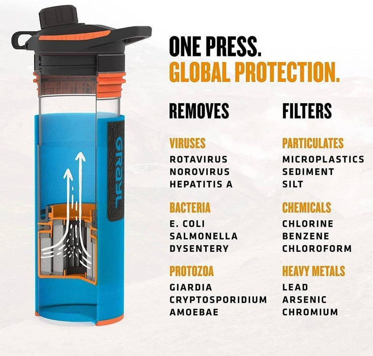 - Award-winning OnePress™ global protection is effective for use on all 7 continents so you can save money, travel sustainably and never buy single-use bottled water again