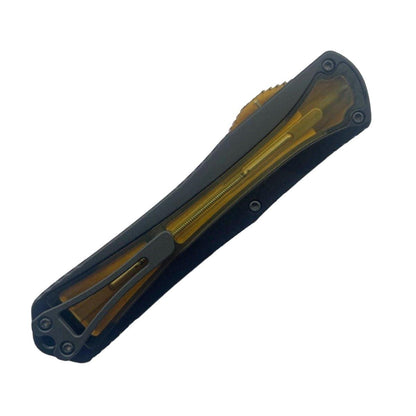 The Heretic Knives Manticore X is a double action out the front auto with top quality fit and finish, overbuilt toughness, and super smooth D/A OTF action! It features a side mounted thumb slide for easy operation. The handle has a subtle contour and jimping around the edges for a secure grip. Complete with a deep carry pocket clip, built in lanyard hole (the handle tapers toward the base) and a glass breaker tip. This Heretic OTF is a home run!