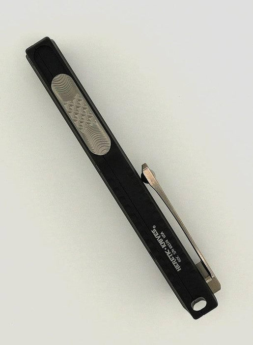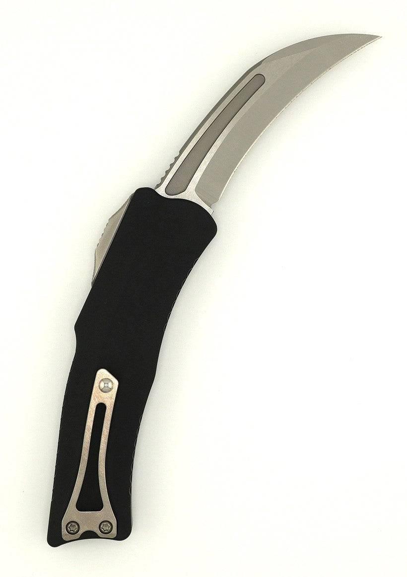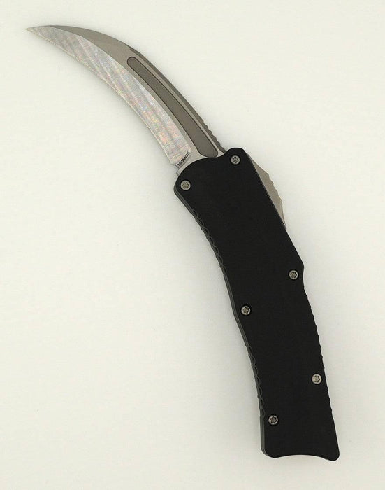 Heretic Knives Roc OTF Auto Knife 3.2" MagnaCut Satin Hawkbill Black Handles
