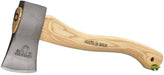 The Hults Bruk Tarnaby is a small, all-purpose hatchet for basic uses such as making kindling, doing light clearing and working in the garden. This item has an axe head weight of 1.25 Lbs and a handle length of 15 inches. The head is the product of blasted and clear-lacquered ironwork and the curved shaft is made of US-sourced hickory. The handle is treated with linseed oil.
