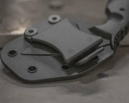 In extreme close-quarter encounters where a suspect is attempting to take an officer's handgun, or an officer cannot access his handgun, the TDI knife is available as a "last option" knife. When worn on the pant belt the entire unit - knife and sheath - is well concealed. Designed by John Benner, founder and owner of Tactical Defense Institute.