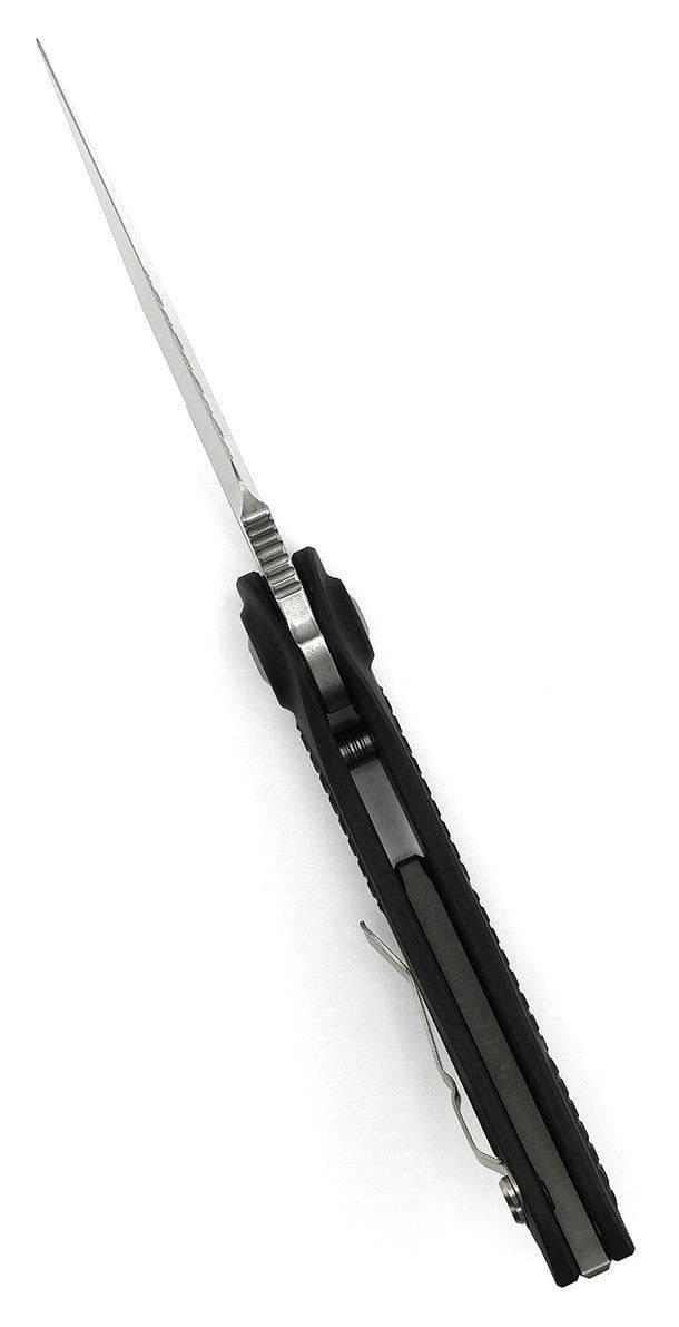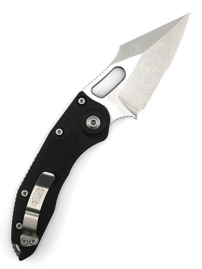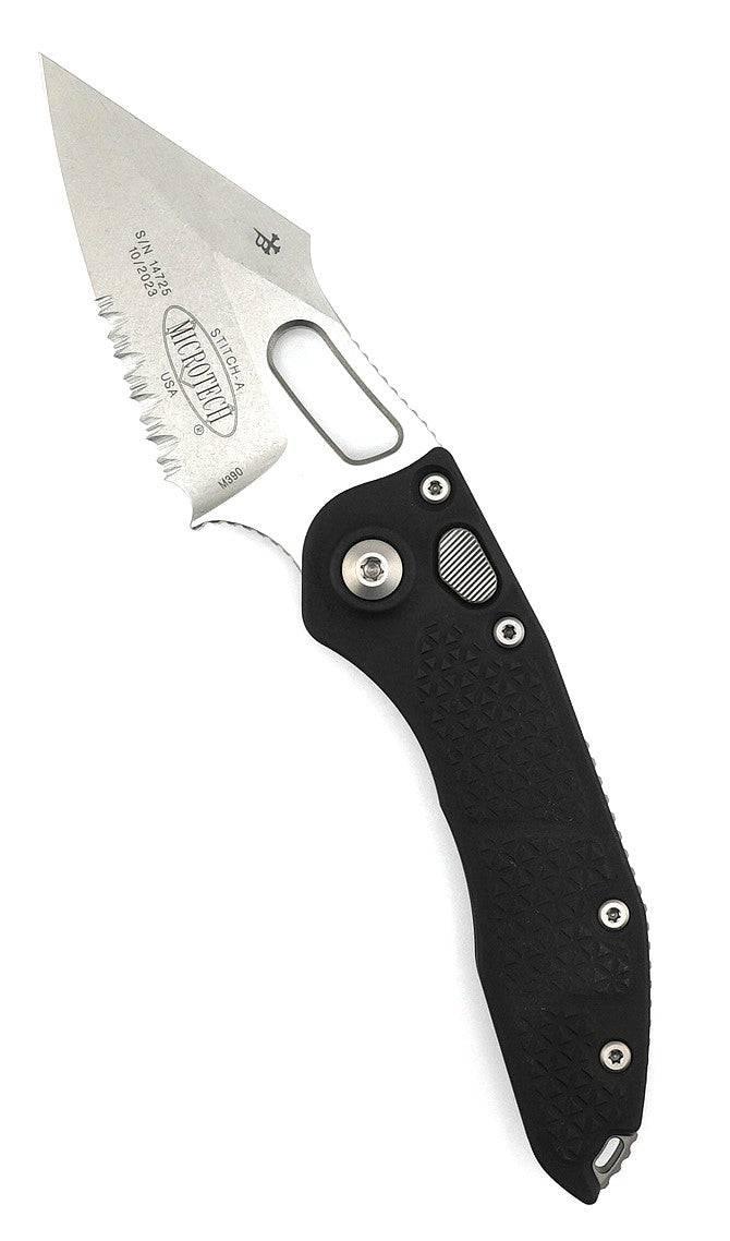 Microtech/Borka Blades 169-11 Auto Stitch 3.625" Stonewashed Spear Point Combo Blade Black Handles