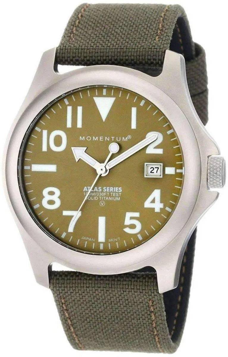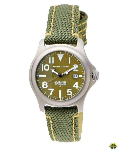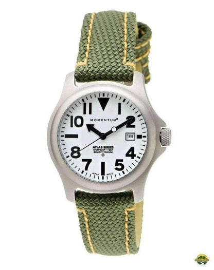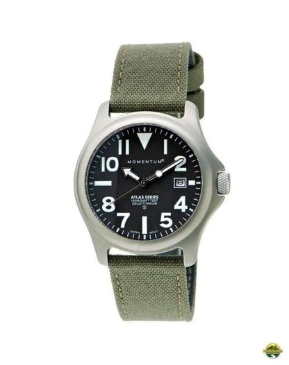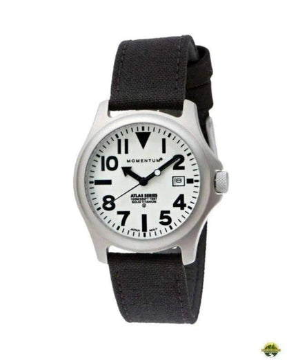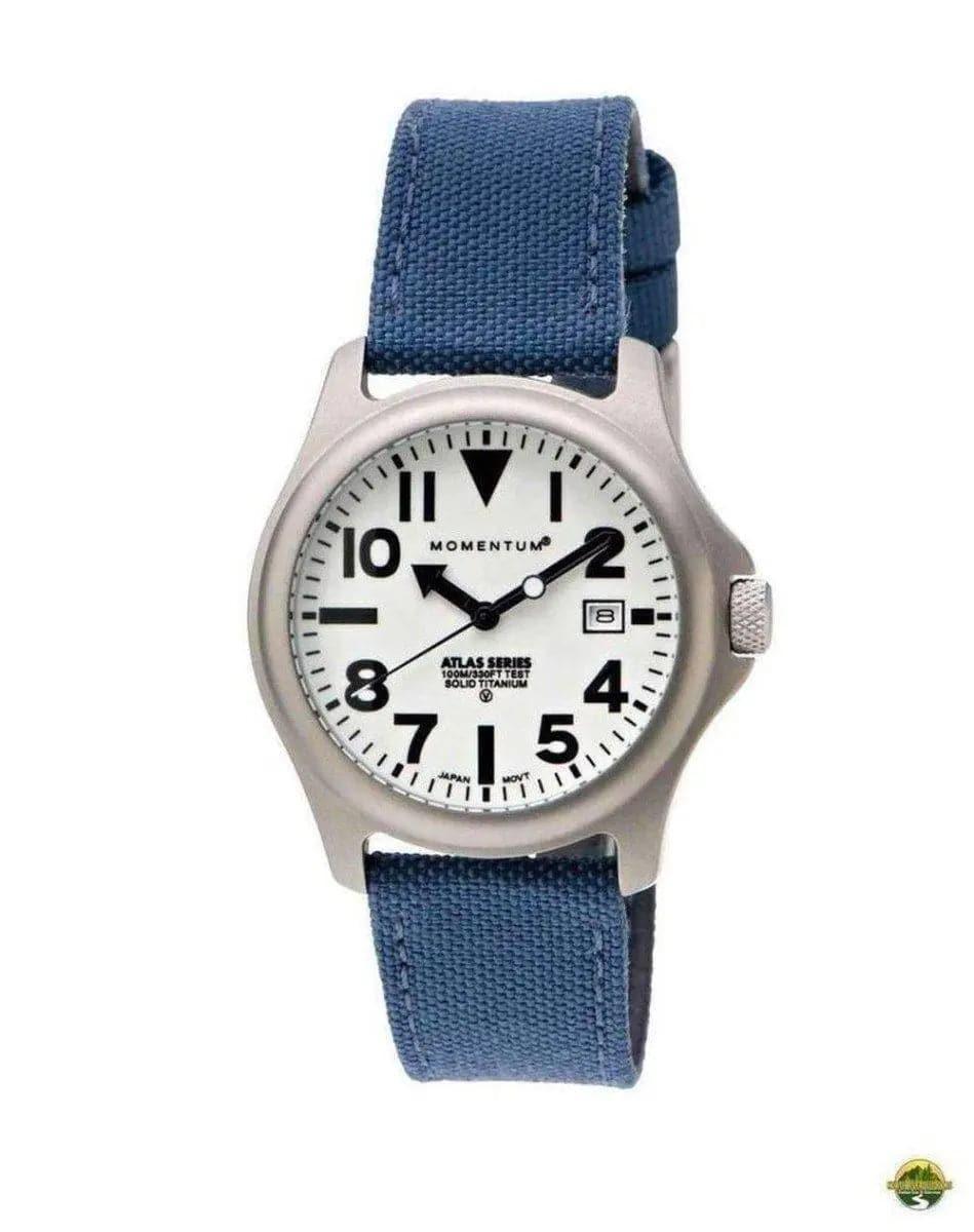Momentum's Atlas 38 Fabric watch is discrete, traditional size (38mm). Engineered in solid titanium, to be so light, you will forget it is on your wrist. Atlas offers unparalleled comfort, legibility and rock-solid water-resistance. But don’t let the light weight fool you. This watch is a heavy-duty performer, guaranteed. Its built to last in your everyday adventure.