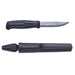 The Mora 510 is a foundational outdoor recreation knife with a blade made of carbon steel and a shock resistant, polymer black handle with thermoplastic sheath with drain hole.