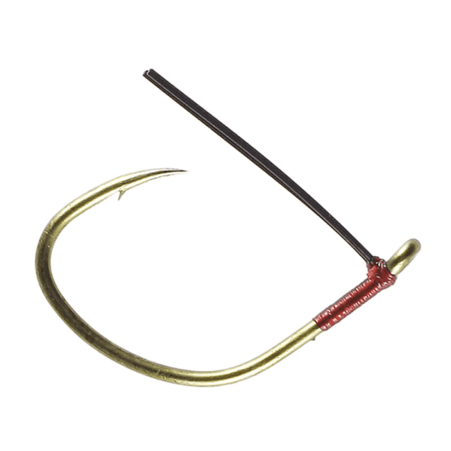 Featuring a Flex Nylon "Weedless" guard, this is a great hook for drop shotting or wacky rigging soft plastics. This is a great hook for fishing in and around heavy cover.