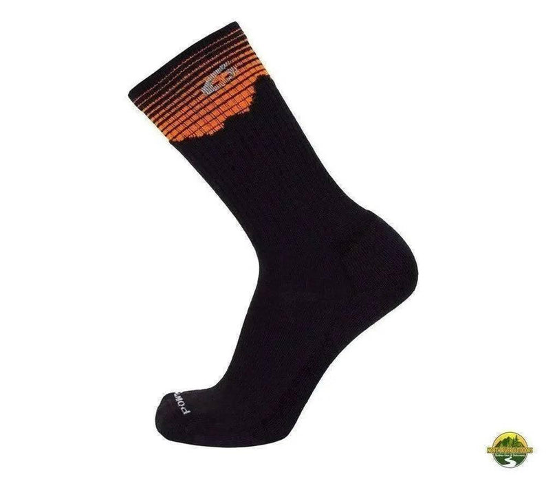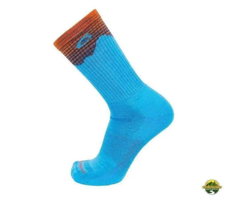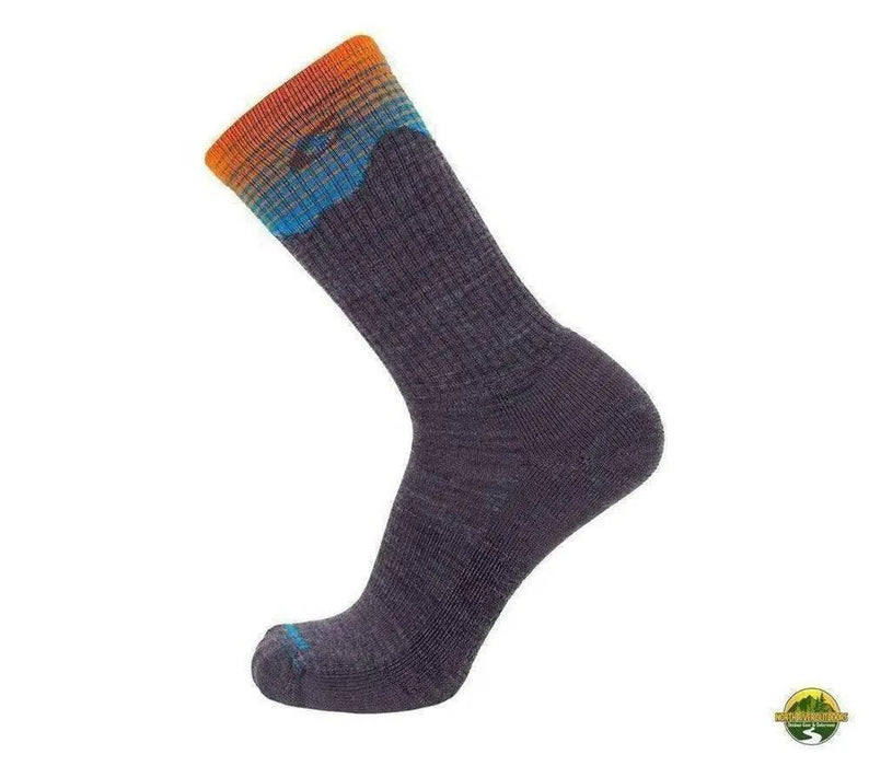 For those seeking light cushioning under the foot and lightweight breathability, the Hiking Peak light crew is just what you're looking for. A silhouette of the mountains with a sunset background provides inspiration to explore your natural playgrounds.