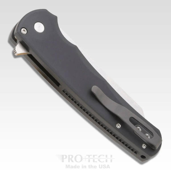 The Pro-Tech Malibu is a fashionable flipper knife with every bit of precision you've come to expect from Pro-Tech. This rare knife has a silky ball bearing action and a numbered First Production Run. It flies open with the flipper action, with no springs attached, so it's legal in more places (like Malibu, for instance). It locks up with the plunge lock, and has a reverse tanto blade that easily handles all your EDC tasks.