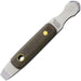 - Stainless construction with green canvas micarta handle