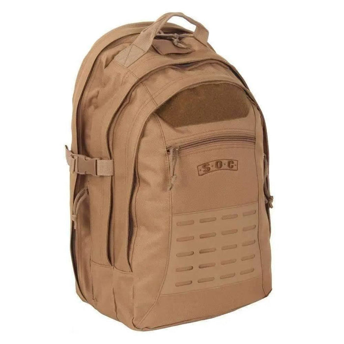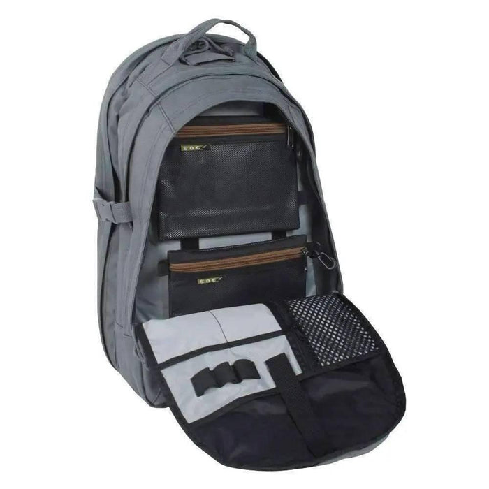 The new SOC Venture Pack has a sleek design equipped to carry your electronics, supplies, and includes concealed-carry pockets. Keep your laptop safe in the padded compartment or secure your tablet or e-reader in the electronics pocket. Open the venture and lay it flat to allow for an easier inspection through security check-points. Equip MOLLE/PALS compatible pouches to the panel externally. Organize supplies easy by using the internal quickpack flash pouches. The venture is equipped with (2) concealed pockets and a modular holster for a concealed carry. Internally, find an additional sleeve built to fit soft body Armor. Carry comfortably with the mesh-padded backing and shoulder straps and adjust the sternum strap and waist-belt for the perfect fit.