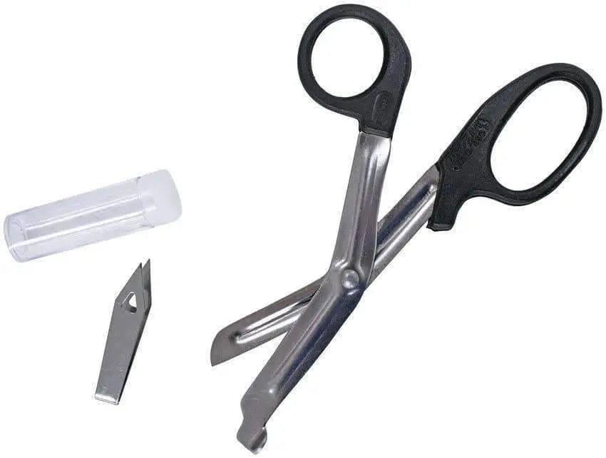 6.25" overall. Great for your first aid kit or bugout bag. Hospital quality EMT shears with precision point splinter/tick remover forceps. Stainless steel construction. Large finger openings. Milled serrations.