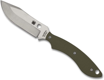Spyderco Stok Bowie Fixed Blade Knife 2.95" Satin Plain Blade, OD Green G10