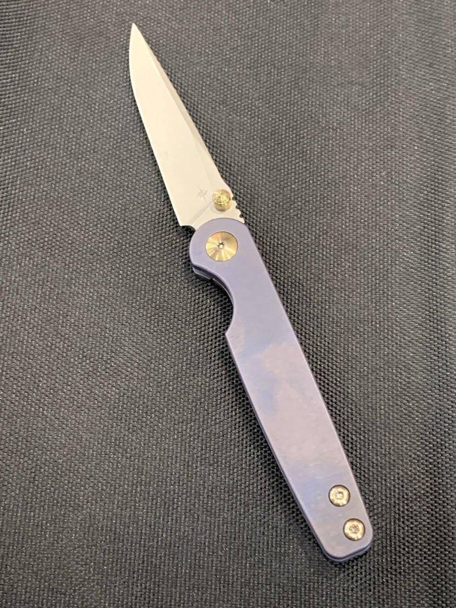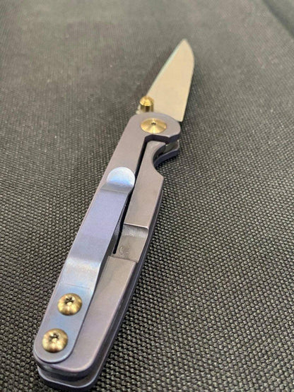 This Toor Knives Suitor FL154S Folding Knife 3" CPM-154 Stonewashed Drop Point Blade has be professional anodized "blue" with all titanium hardware. This knife is one-of-a-kind. The knife you are viewing is the actual knife you will receive - Only 1 In-Stock.