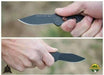 "The feel in the hand is like a thin opened folder, but with a proportionally longer blade than would be possible with a folding knife. A cutting utility tool with tactical possibilities in reserve. Its balance point is right at the index finger and the design almost invites you to choke up on the knife for finer work. Its broad blade for its size makes the "Sneaky Pete" suitable for general woods utility tasks."