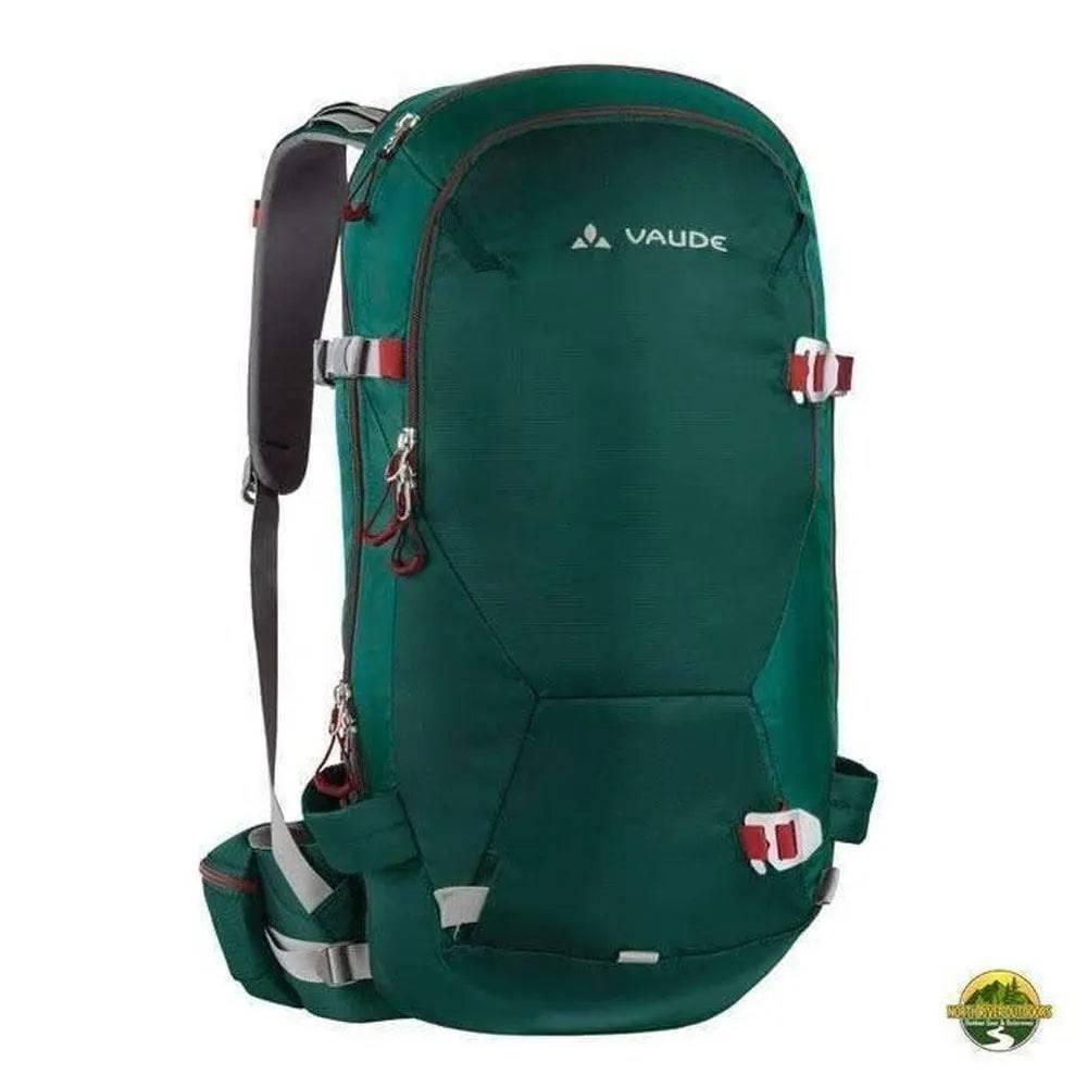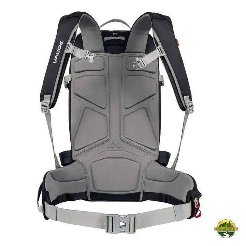 snow-shedding molded back panel - front loader for easy and organized access - front compartment for shovel and probe - padded pocket for eyeglasses - side ski attachment - diagonal ski attachment - front fixation for snowboard - helmet holder - attachment point for ice tools - lightweight hip belt with zip pocket - sternum strap with whistle - information panel for alpine emergency inside main compartment - opening for hydration system