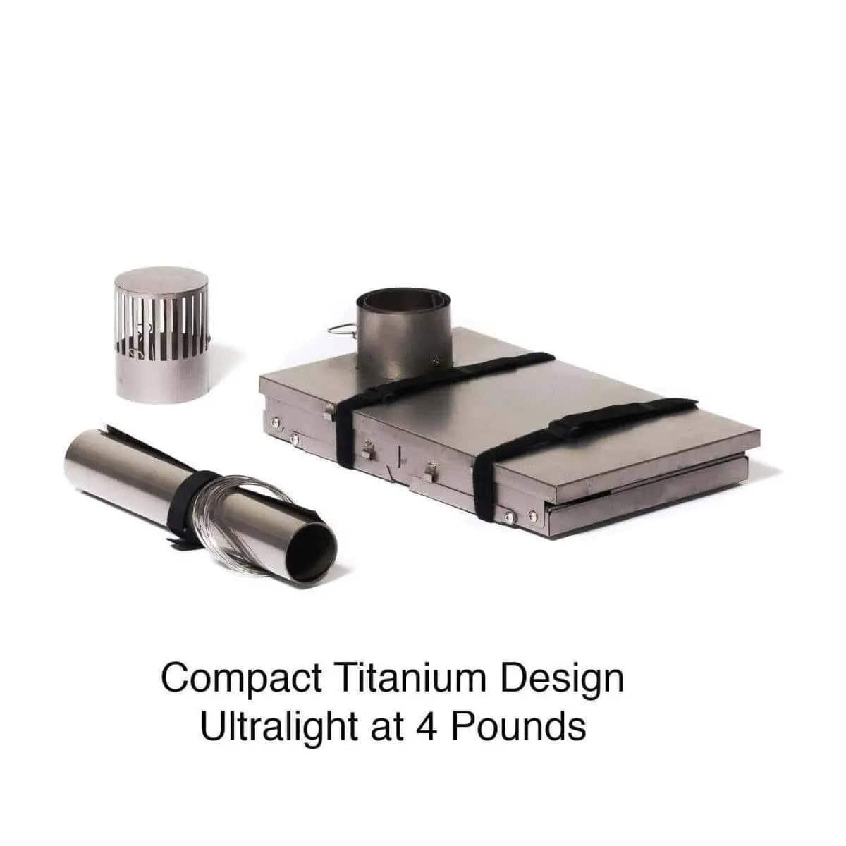 The Winnerwell Fastfold Titanium Stove: ideal for adventurers. Ultralight and Ultra-packable, this stove easily folds and weighs only 4lbs. No hardware needed, just fold and secure. Its top can also function as a fire pan for outdoor trips.