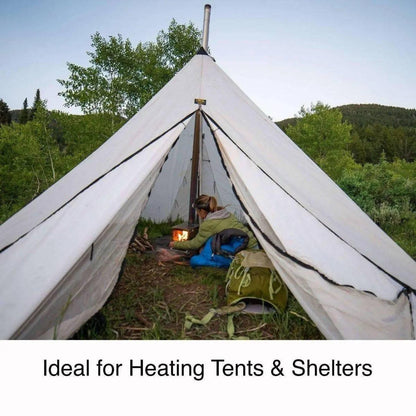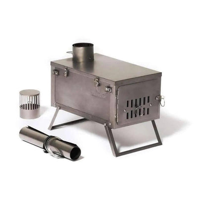 Made with ultralight titanium, the Winnerwell Fastfold Titanium Tent Stove is highly portable and incredibly lightweight at just 4 pounds. Titanium can withstand much higher temperatures than steel, allowing this stove to be made from very thin material that keeps weight and pack size to a minimum. The high heat transfer efficiency of Titanium allows these stoves to effectively heat small shelters in very cold conditions and hold hot coals for hours.